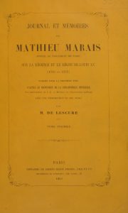 MARAIS (Mathieu). Journal et mémoires sur la Régence et le règne de Louis XV (1715-1737). Publiés pour la première fois d'après le manuscrit de la Bibliothèque impériale, avec une introduction et des notes par M. de Lescure. Paris, Firmin...