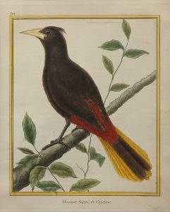 Bonne-Espérance, Cassique huppé de Cayenne, Héron bleuâtre de Cayenne, Maubèche tachetée, Le Pique-bœuf du Sénégal, Grimpereau de Maraille mâle et femelle, Poule d'eau de Cayenne, Râle de Cayenne, Oye de Canada, le Cravant, Casoar des Indes orientales, Chevalier varié, Ara verd du Brésil, Geay de Cayenne, Perroquet à col bleu de Guiane, Grande Pie grièche verdâtre de Madagascar, Pies grièches bleue et rousse de Madagascar, Moineau du Brésil, Rollier du Sénégal, Héron bleuâtre à ventre blanc de Cayenne, Pie du Canada et petite pie du Sénégal, Coucous de Madagascar, Perroquets de Cuba, de La Havane, à fond blanc du Sénégal, vert et rouge de Cayenne, Petite perruche verte de Cayenne…