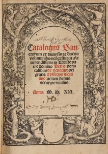 [Livre du XVIe s.]. NATALIBUS (Petrus de). Catalogus sanctorum ex diversis ac doctis voluminibus co[n]gestus… denuo accurate revisus. S.l., s.n., 1521. In-folio, [3]-CCXXXVI f. (dont le titre en rouge et noir dans un encadrement gravé sur bois),...