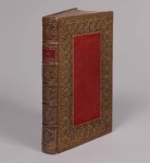 large dentelle dorée composée de feuillages, fleurs et pampres encadrant un rectangle central de maroquin rouge serti d'une fine roulette dorée, roulette dorée aux coupes et bords des contreplats, doublure de soie rouge, tranches dorées sur marbrure (un coin émoussé).