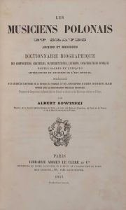 [Pologne]. SOWINSKI (Wojciech, dit Albert). Les musiciens polonais et slaves, anciens et modernes. Dictionnaire biographique des compositeurs, chanteurs, instrumentistes, luthiers, constructeurs d'orgues, poètes sacrés et lyriques, littérateurs et...