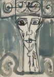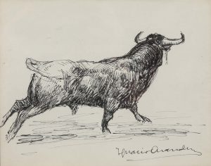 OSTOS (Jaime). Portrait de torero. Encre de Chine et lavis, signé. 24 × 19 cm. On joint : ARANDUY (Ignacio). Taureau. Encre noire, signé. Soit 2 pièces au total.