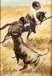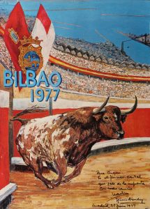 ARANDUY (Ignacio). - Retour du campo. - La Garocha. Deux peintures sur panneau, signés en bas à droite datés [19]67 . 30 × 60 cm. On joint : Affiche Bilbao 1977, dédicacée par Aranduy.