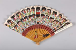 AGUAYO (Juan). Eventail à décor peint d'arènes, signé et daté 1983.