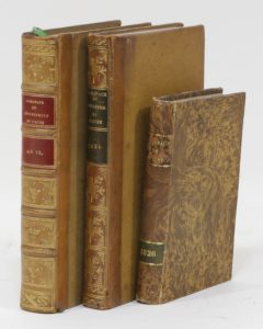 • Almanach du commerce, des administrations, des notaires, avoués et autres fonctionnaires publics du département de l’Aube, pour l’an 1821. Troyes, Bouquot, 1821 ; pet. in-8, demi-veau fauve, dos lisse orné de motifs dorés, pièce de titre et millésime verte, [Rel. de l’époque].