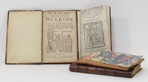 • Le Romant de la belle Heleine de Constantinople, mère de Saint Martin de Tours en Tourraine, & de Saint Brice son Frère. Troyes, Veuve de Jacques Oudot & Jean Oudot fils, 1730, belle vignette de titre gravée sur bois.