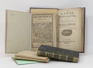 [BIBLIOTHÈQUE BLEUE]. Dix ouvrages de colportage et impressions populaires. 7 vol. in-12 à pet. in-8, brochés ou en demi-reliures modernes. • La Lampe merveilleuse, ou Histoire d’Aladdin. Troyes, Garnier, s. d. Ex-libris Charles Moncorgé et...