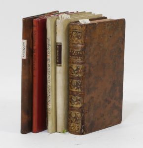 [BIBLIOTHÈQUE BLEUE]. Douze ouvrages de colportage et impressions populaires. 5 vol. in-12, un en reliure de l’époque, les autres en reliures et demi-reliures modernes. • Arlequin empereur dans la Lune. Comédie. Par Monsieur D***. Troyes, J....