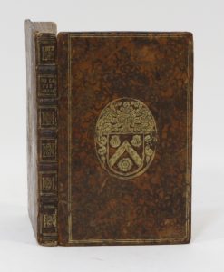 marbré, encadrement de deux filets dorés et armes dorées au centre des plats, dos à nerfs avec monogramme doré au centre des caissons, [Rel. de l'époque], coiffes absentes, mors fendus, coins frottés.