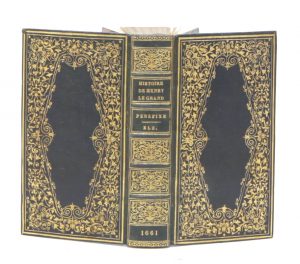 HARDOUIN DE PEREFIXE (Paul Philippe). Histoire du Roy Henry le Grand. Amsterdam, Louys & Daniel Elzevier, 1661 ; in-12, chagrin bleu nuit, sur les plats large décor de petits fers dorés en encadrement laissant vide un losange au centre, dos à...