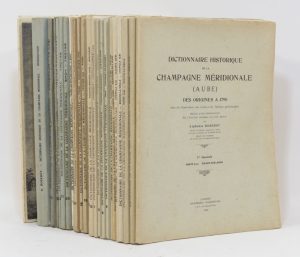 ROSEROT (Alphonse). Dictionnaire historique de la Champagne méridionale (Aube) des origines à 1790. Langres, Angers, Imprimerie champenoise, Éditions de l'Ouest, 1942-1948 ; 24 fascicules et un vol. pet. in-4, en ff., sous chemises. Bien...