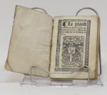47, [1] ff., dont le f. de titre avec la grande marque d’imprimeur de Jean Lecoq avec au verso un bois gravé représentant un personnage assis conversant avec cinq personnages face à lui et un sixième derrière son fauteuil.