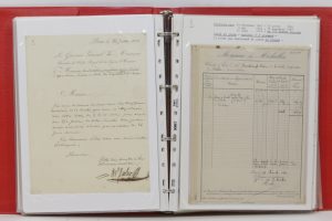 [SOCIÉTÉ ACADÉMIQUE DE L’AUBE]. Ensemble de documents relatifs aux diplômes et marques officielles de la Société académique de l’Aube. , réunis dans un classeur in-4. Nombreux documents imprimés et manuscrits relatifs à cette...