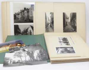 [TROYES.— PHOTOGRAPHIES]. Recueil de 113 photographies. montées sur papier fort, réunies sous chemise cartonnée in-4, . Réunion de 113 tirages photographiques, la plupart modernes, présentant des vues du vieux Troyes. Certaines photographies...