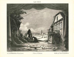 DÉCORS ET COSTUMES. Ensemble de planches lithographiées ou imprimées, diffusées par Heugel (27 x 35 cm).