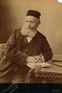 [Charles GOUNOD]. Photographie par Paul Nadar. Grande photographie de Gounod assis, les mains posées sur un livre ouvert ; signature et date en bas à droite (un peu effacé) : « P. Nadar 1873 » (papier albuminé 37,5 28 cm monté sur carton à la marque de Nadar, coin manquant en haut à droite).