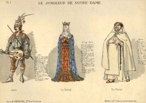 [Jules MASSENET]. Suite de 9 planches pour les costumes et décors de l'opéra Le Jongleur de Notre-Dame (1902) ; env. 27 x 35 cm. (les 5 premières montées sur carte).