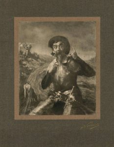 [Jules MASSENET]. Photomontage par Paul Nadar, signé en bas à gauche par le photographe, représentant Fédor Chaliapine dans le rôle-titre de Don Quichotte (1910) ; 22 x 18 cm, montée sur carte in-fol. à la marque Nadar.