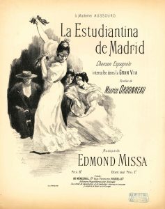 Joseph Canteloube, L'Arada (la Terre), sonnets d'A. Perbosc (Heugel, 1923). Gabriel Dupont, Poèmes d'automne (Heugel 1920, couv. illustrée). Edmond Missa, La Estudiantina de Madrid (Heugel s.d., couv. illustrée par A.L., plus tirage de la gravure). Igor Strawinsky, Pribaoutki (chansons plaisantes), texte français de Ramuz (Genève, Henn, 1917).