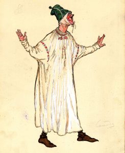 [Giacomo PUCCINI]. Gianni Schicchi (Scala 1922), série de 15 planches publiée par G. Ricordi des costumes dessinés par Luigi Sapelli dit Caramba pour la production de la Scala en 1922 ; planches imprimées rehaussées à l'aquarelle (35 x 23,5 cm).