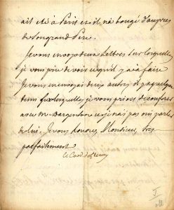 Au sujet de l'exil du marquis de Nesle, qu'on a transféré à Évreux, « mais je doute qu'on puisse jamais changer son caractere qui ne laissera pas de causer bien des embaras »… L'archevêque de Conflans conférera avec le Président de l'union des chapitres de Saint-Thomas et de Saint-Nicolas du Louvre. « Vous ferés fort bien d'empecher qu'on n'imprime le bref du Pape à M. le Recteur et je vois que vous etes informé des inconvéniens que cette impression pourroit produire. J'ai renvoyé à M. de Maurepas tous les papiers qui regardent le Père Boyer où je n'ai rien compris car il me semble que ces lettres parlent du Père Boyer comme un religieux de l'abbaye »…