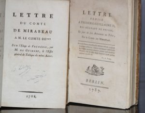 - Lettre remise à Frédéric-Guillaume II, roi régnant de Prusse, le jour de son avènement au trône, par le Cte de Mirabeau. Berlin, 1787. 91 pp.