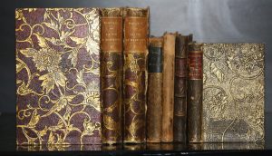 Réunion de cinq ouvrages reliés à la bradel par Paul Vié, plein papier japonisan