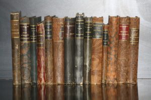 Réunion de quatorze livres reliés par JARRIGEON, plein papier à la bradel, dates en queue.