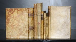 Réunion de sept ouvrages ; reliure velin par JARRIGEON.