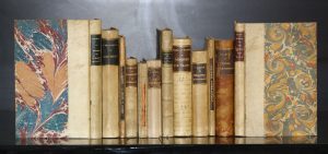 Réunion de douze ouvrages ; reliure demi-velin, certains de réemploi, par JARRIGEON, avec pièces de titres.