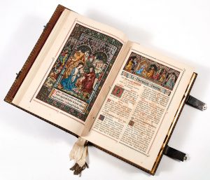 Tornaci Nerviorum, Sumptibus et Typis Societatis S. Joannis Evangelistae Desclée Lefebvre et sociorum , 1880. Un vol. for in folio plein maroquin janséniste doublé havane à grains, , dos à nerfs, fermoirs de style médiéval, trnaches dorées, signét en soie. (Lesort à Paris)