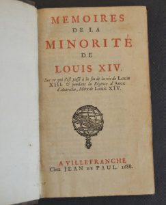 ROCHEFAUCAULD (François, Duc de la) – Mémoires de la minorité de Louis XIV. Sur ce qui s'est passé à la fin de la vie de Louis XIII & pendant la régence d'Anne d'Autriche, mère de Louis XIV. Villefranche, chez Jean de Paul 1688.