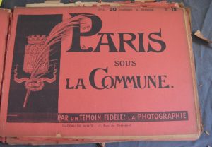 Portfolio In 4° oblong éditeur, contenant 26 livraisons de 8 pages de reproductions de photos en noir (scènes de destruction à Paris et en Banlieue, portraits de Communards, scènes de procès.) bien complet de la livraison de 4 pages offrant 32 costumes militaires de la Commune en couleurs d'après Raffet.