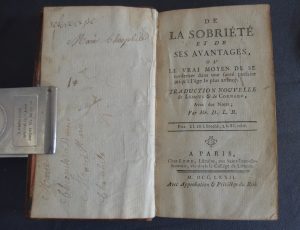 Cornaro (Luigi) & Lessius – De la sobriété et de ses avantages, ou le vrai moyen de se conserver dans une santé parfaite jusqu'à l'âge le plus avancé. & Conseils et moyens faciles pour vivre long-tems dans une parfaite santé,