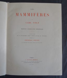 Paris, Masson 1884. In folio plein percaline verte décorée, (Engel et Souze),xxvii, 548 pp. Edition originale française illustrée de 40 planches hors texte et de 265 figures de Frédéric Specht. Très bel exemplaire.