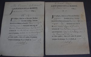 Ensemble de deux capitations au nom de Monsieur Duméné de Lézurec datées de 1756. 2 feuillets In 8°. Brest le 3 janvier 1757. signés Lebel.
