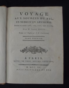 Bruce (James) – Voyage aux sources du Nil, en Nubie et en Abyssinie, pendant les années 1768, 1769, 1770, 1771 & 1772.