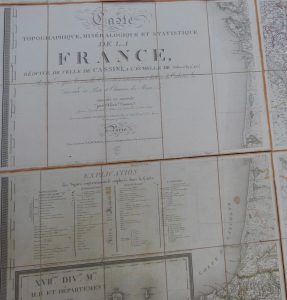 Paris,Chez Hyacinthe Langlois, 1817. Ensemble de 25 cartes entoilées orange formant une carte géante de 3,50 x 3 m. , sous cartonnages de l’époque, marbrés à rabats. Bien complet de la carte d'assemblage et des feuillets explicatifs. Bel ensemble en bon état, manque un étui.