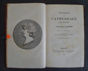 Rouen, Nicétas et Legrand, 1838. In 8° demi chagrin rouge, frontispice, v, 221 pp. 1 ff. Ouvrage illustré d'un portrait d'après David d'Angers gravé par Brévière (frontispice), et 13 planches gravées hors-texte. Intéressant ouvrage pour les descriptions des miséricordes sculptées (corps de métier, déguisements monstrueux...) et les notices historiques.