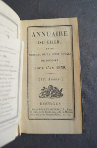 [Annuaire] – Annuaire du Cher et du ressort de la cour d'appel de Bourges pour l'année 1839.