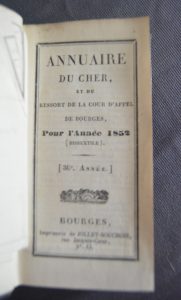 [Annuaire] – Annuaire du Cher et du ressort de la cour d'appel de Bourges pour l'année 1852