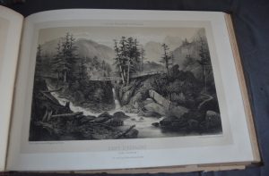 Album In folio oblong pleine toile titré « Souvenirs des Pyrénées par Gorse ». Recueil de lithographies en trois couleurs, dont certaines sur double page. 1 – Vue du château de Pau et du pont prise de Jurançon. 2 – Pic du Midi d'Ossau. 3 – Vue des Eaux-Bonnes. 4 - Cascade de Discoo, aux Eaux-Bonnes. 5 – Biarritz, vue de la villa Eugénie. 6 – Saint Jean de Luz, vue générale du coté de la plage des baigneurs. 7 – Bayonne, place du théatre vue du pont Mayou. 8 – Pont Napoléon à St Sauveur. 9 – Route du limacon, près de Cauterets. 10 – Cauterets, vue prise de la promenade du mamelon vert. 11 – Pont d'Espagne, près de Cauterets. 12 – Lac de Gaube, près de Cauterets. 13 – Chutes supérieures près du pont d'Espagne. 14 – Cirque de Gavarnie. 15 – Vue générale de Bagnères de Bigorre. 16 – Vue prise du col d'Aspin. 17 - Vue générale de Bagnères de Luchon. 18 – Cascade d' Enfer, vallée du Lys 19 – Gouffre infernal, vallée du Lys. 20 – Port de Venasque. 21 – La Maladetta. Et un dessin au crayon (non signé) inséré dans une pochette (montée sur onglet). Bel ensemble.