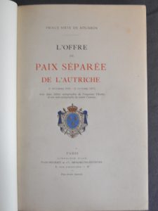 Sixte de Bourbon (Prince) - L'offre de paix séparée de l'Autriche (5 décembre 1916 - 12 octobre 1917).