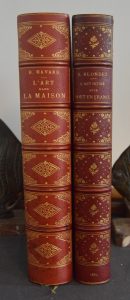 Paris, Rouveyre et Blond 1884. In 4° demi chagrin à coins, frontispice, vi, 408 pp. Nombreuses illustrations dans le texte et nombreuses planches hors-texte de divers artistes. Bel ex. libris Ouvrard de Linière. On y joint : Blondel (Spire) – L'art intime et le goût en France. Paris, Rouveyre et G. Blond 1884. In 4° demi chagrin rouge à coins, couv., conservées, 396 pp., 25 planches hors texte. Bon exemplaire