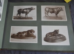 Album In folio composé de 47 feuilles regroupant 223 photographies principalement de bronzes, tableaux et dessins d'Antoine Louis Barye, on y trouve également des œuvres d'Henri Matisse, d'Odilon Redon... etc.