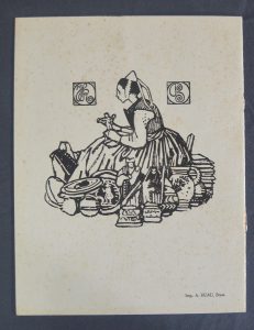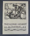 Imprimerie A.Huau Brest. Couverture d'un catalogue de la Faiencerie Henriot, Quimper, ornée de 2 bois gravés de Mathurin Méheut.