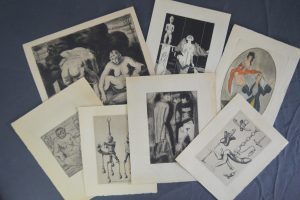 Ensemble de 7 gravures érotiques. dont une de Barbier, une de Sylvain Sauvage... etc.