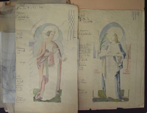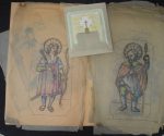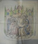 Dessins préparatoires sur calques et papier, crayon et aquarelle, 14 dessins sur claque et 3 aquarelles sur papier, représentant des scènes religieuses, « peut etre réalisés pour pour l'église Saint-Honoré d'Eylau. Annotations au dos d'une des aquarelles : Monseigneur Merio, 44 rue du Cherche midi...