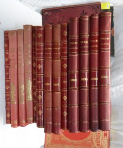 3 vol. In folio demi toile, abondamment illustré par Steinlen, Sandy Hook, Balluriau... etc. Textes de Zola, Maupassant, Paul Verlaine, Catulle Mendès... etc. on y joint Gill (André) - lLéclipse année 1873. In folio, demi basane.