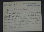 Carte autographe datée du 15 février 1887. Dans laquelle il remercie un confrère concernant son article.